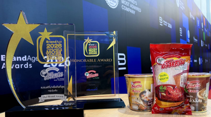 “วุ้นเส้นต้นสน” คว้ารางวัล 2026 Thailand’s Most Admired Brand พร้อมรับรางวัลพิเศษ Thai Brand Award ตอกย้ำแบรนด์วุ้นเส้นที่ผู้บริโภคไว้วางใจ